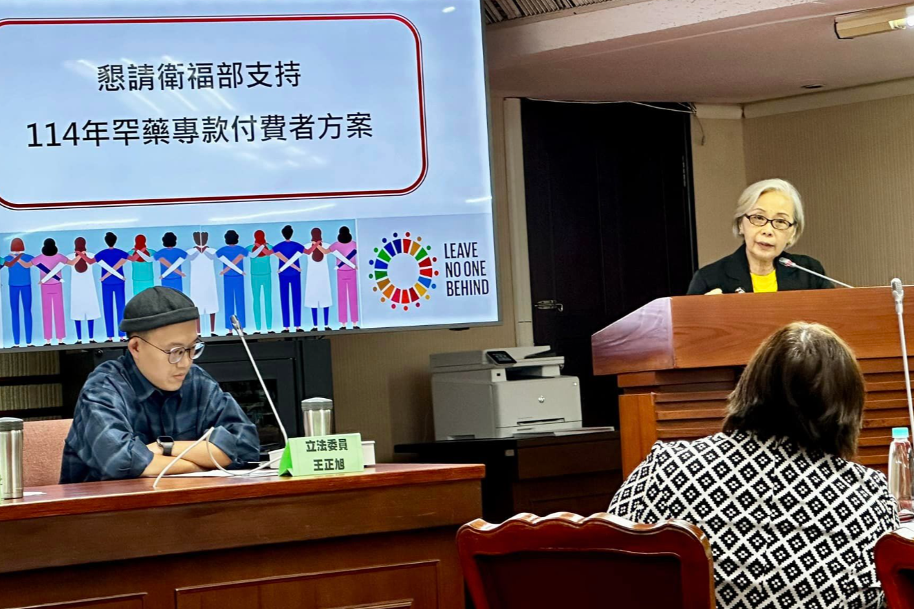 10/30 「114年總額罕藥專款預算」公聽會,本會陳莉茵理事長及團體會員體代表出席向政府爭取罕病應有的專款預算,保障病友用藥治療的權益。